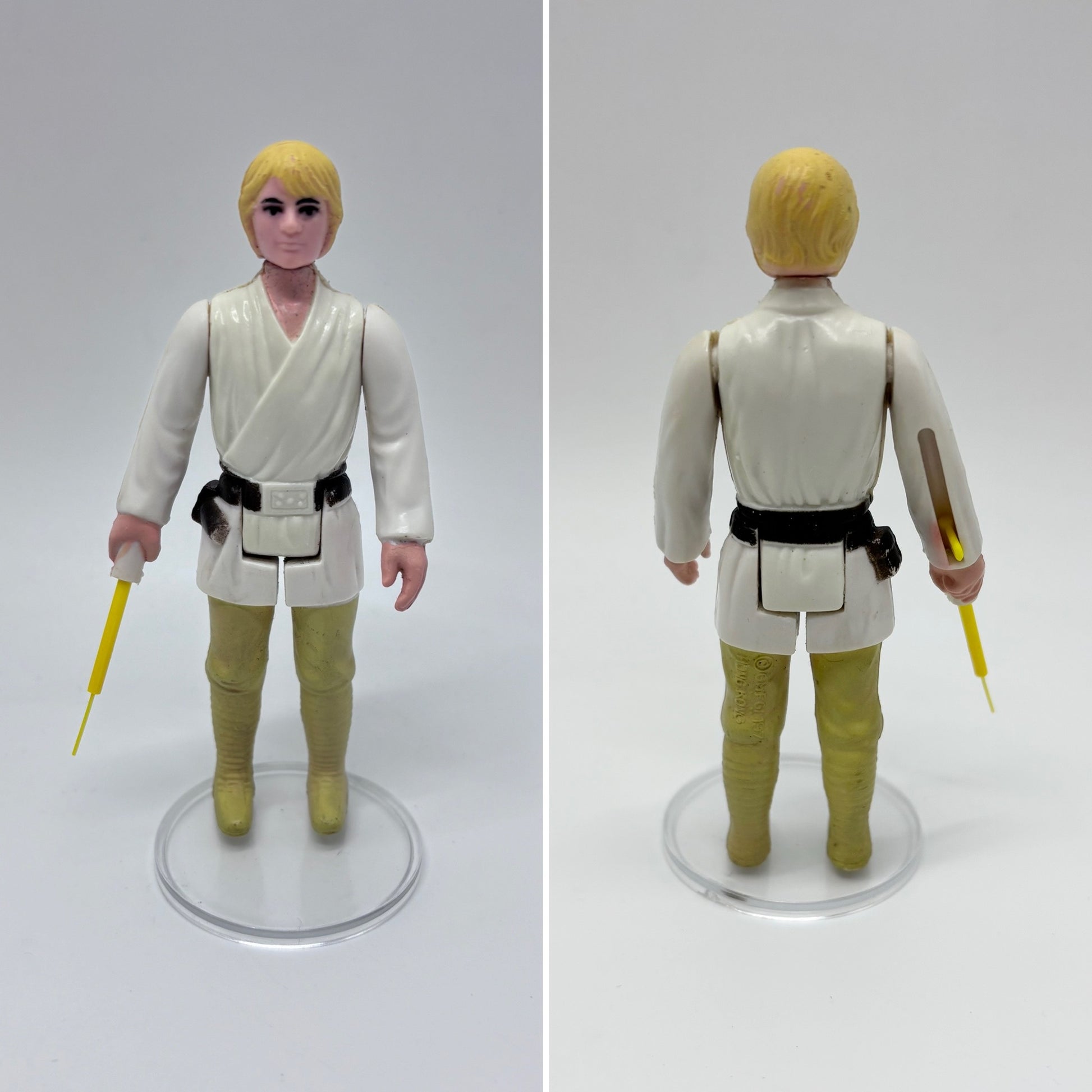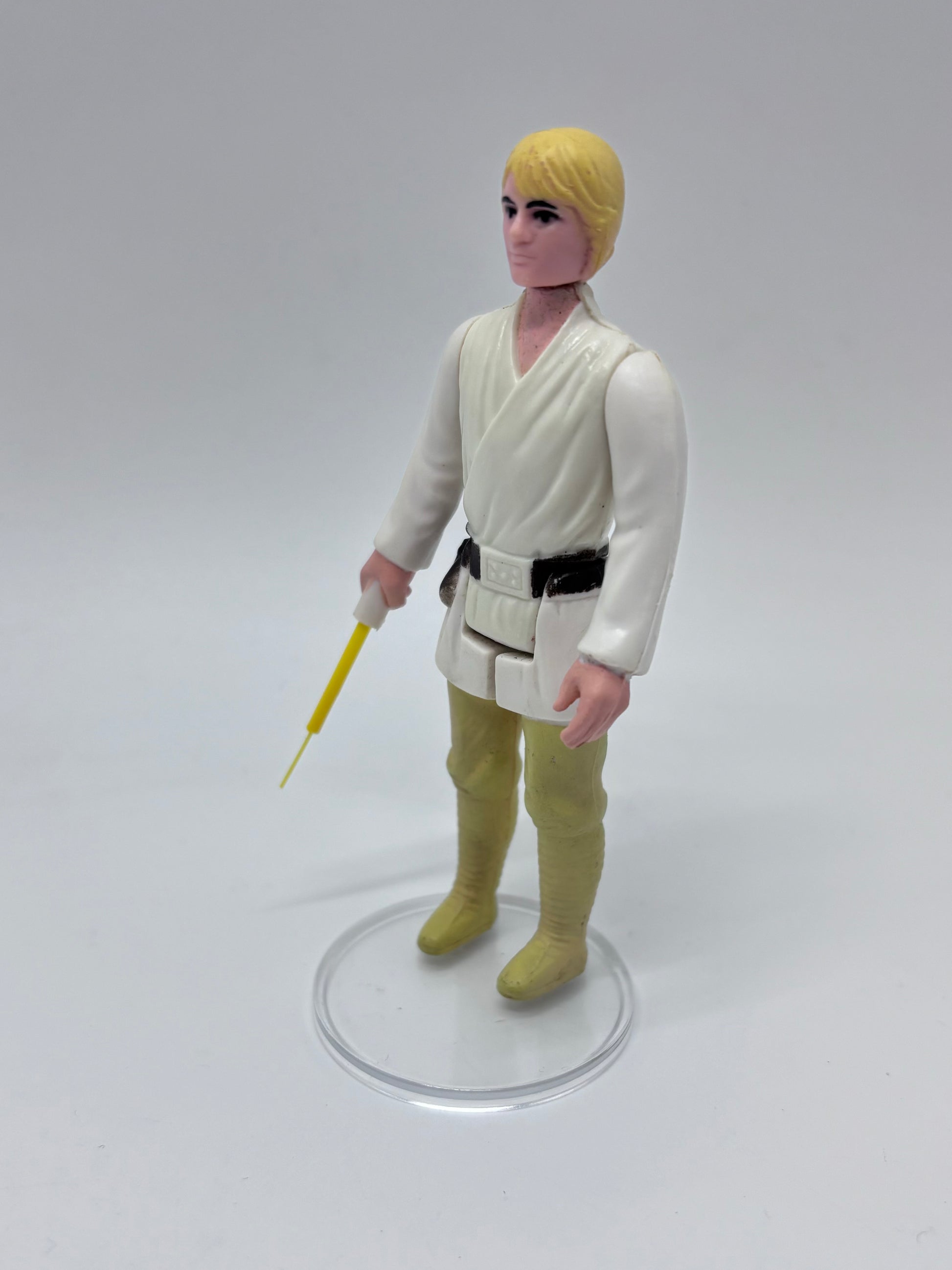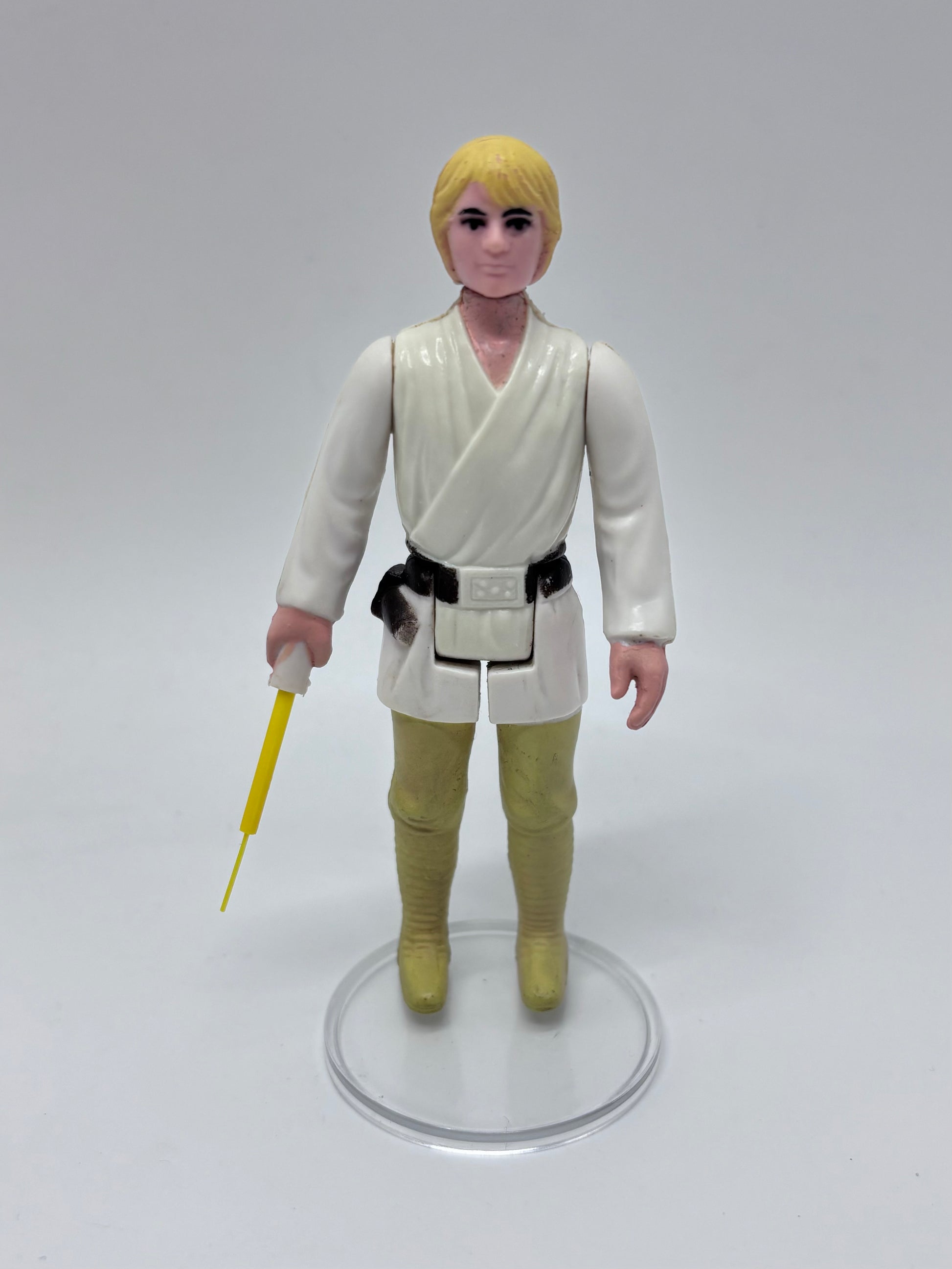 Farmboy Luke Skywalker complete vintage action figure made by Kenner. This figure is fully original and complete with the original accessory, not a reproduction. The limbs are still tight showing little play wear. One arm is slightly looser but still holds in place.